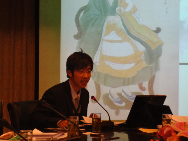 早稻田大学河野贵美子准教授发表的题目为“《海东高僧传》的叙述方法”。高丽僧人觉训撰写的《海东高僧传》是目前朝鲜半岛现存最早的僧传,是研究古代朝鲜佛教与文学、文化重要的史料,但在日本专门的研究凤毛麟角。河野老师在发表中,以其中的“释法云传”为例,对本书的内容、构成以及表现手法等特征作了说明,同时指出本史料与《三国史记》、中国南朝佛教以及与中国古典之间的关系,还介绍了其中出现的“八关斋会”与“花郎制度”等朝鲜特有的风俗习惯。