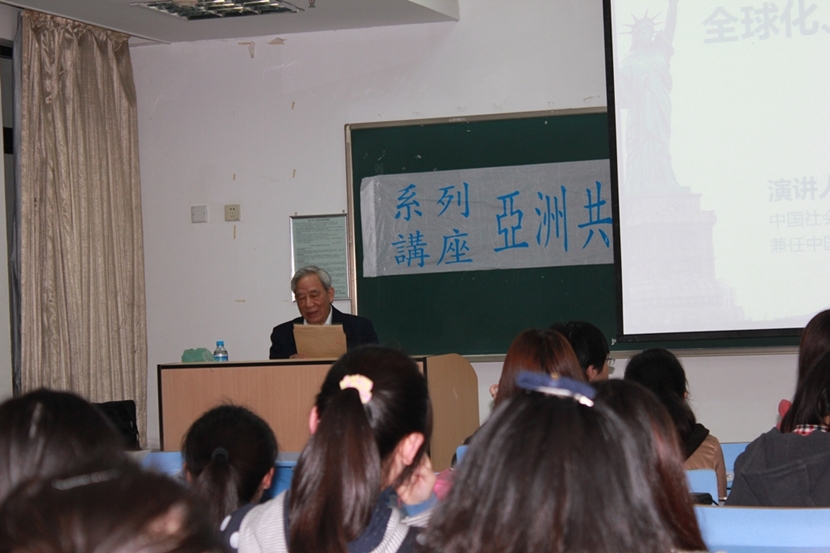 汤教授生于1940年,今年已73岁高龄。这次专程从北京赶到杭州为同学们开设讲座,让同学们倍受感动。这次讲座的主题是“全球化、东北亚区域化与中国”。谈到“全球化和中国”时,汤教授把中国放在东北亚甚至全球大范围内,强调全球化是不可避免的趋势,世界离不开中国,中国也离不开世界。中国应该在世界上更多地、更好地发挥自己的作用。而谈到“东北亚区域化和中国”时,汤教授认为亚洲是一个命运共同体,亚洲各国应该同舟共济,共同发展。汤教授的讲座深入浅出、精彩不断,使同学们获益匪浅,更加深刻地认识到中国和全球化、东北亚区域化的关系。
