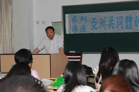 讲座于6点半开始,8点半结束。这次讲座的主题是“中日韩三国关系与东亚共同体的构建”。讲座分为三个部分。在第一部分中,魏志江教授具体介绍了“共同体”的基本概念;在第二部分中,阐述了中日韩三国关系对构建东亚共同体的意义;在第三部分中,提出了构建东亚共同体的路径。魏教授的讲座深入浅出、精彩不断,使同学们获益匪浅,对于东亚共同体有了更进一步的认识。